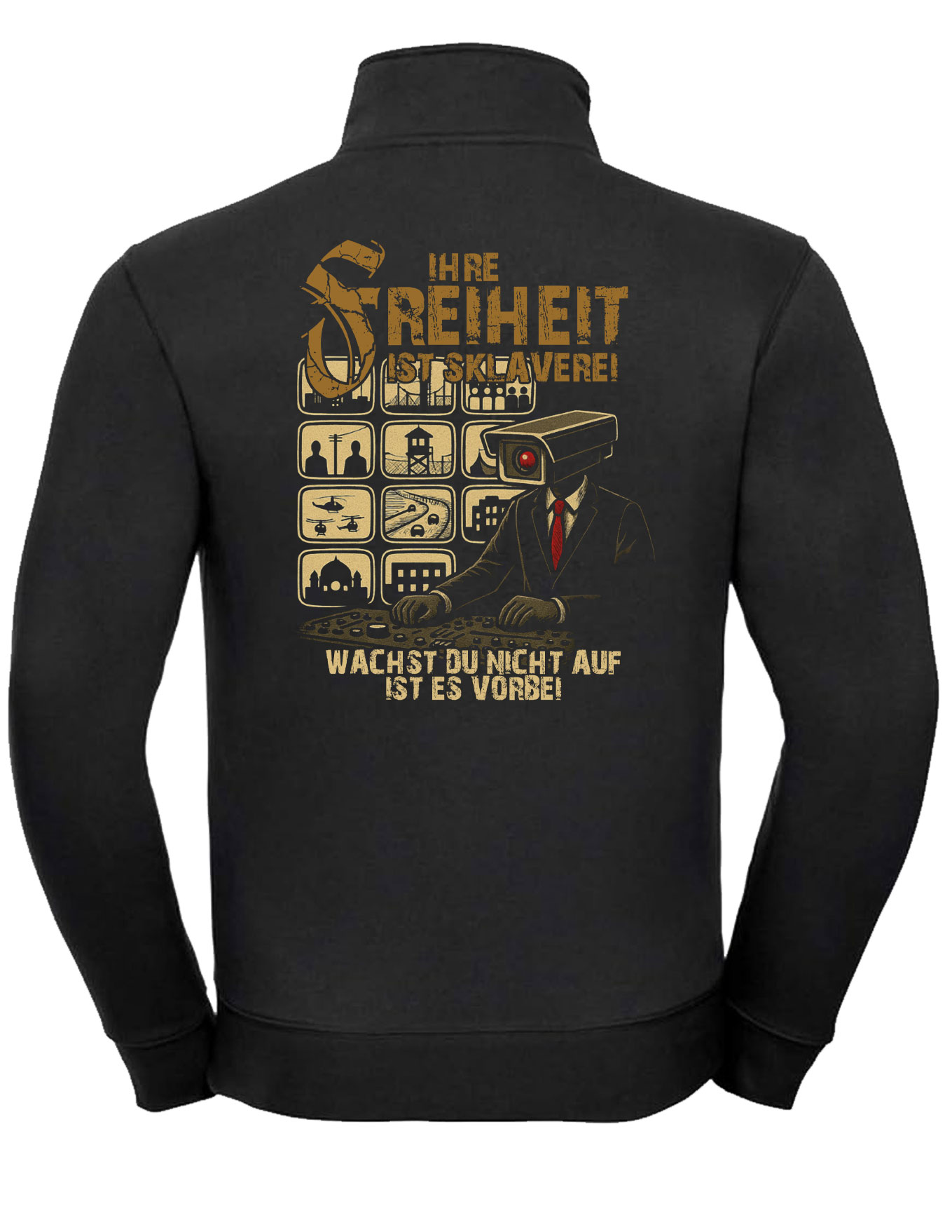 Optisch und qualitativ starke Jacke mit Stehkragen von WHITE HATE mit dezentem Brust- und großem Rückendruck (Ihre Freiheit ist Sklaverei, wachst du nicht auf ist es vorbei).